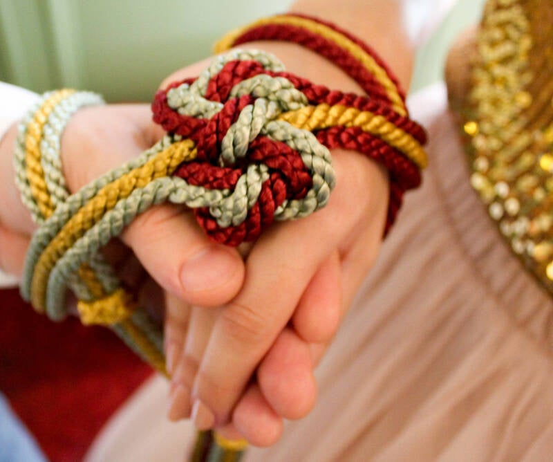 Im Bild ein Beispiel für eine magische Kordel Verwendung - Handfasting - eine keltische Tradition zur Heirat. Bildquelle auf das Bild klicken