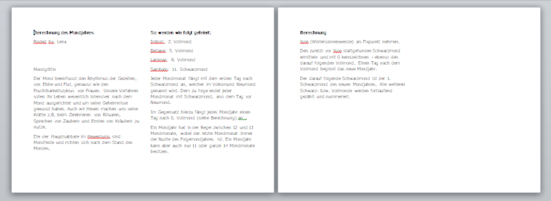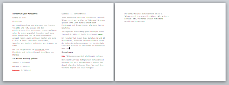Mit ein bischen Geschick im Word kannst Du die Themen auf den Seiten zusammenhängend gestalten, das heißt Du kannst eine Überschrift in die nächste Spalte schieben und so Zusammenhänge wie unten im Foto gestalten.