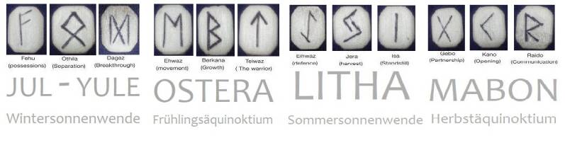 Die Festtage mit den jeweiligen 3 Runen in der aktuellen Kalender Reihenfolge: